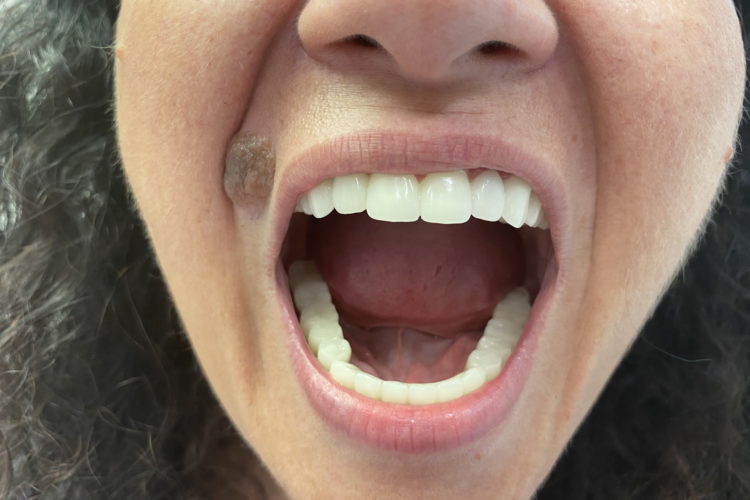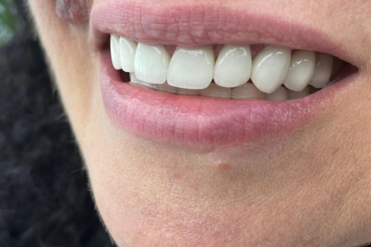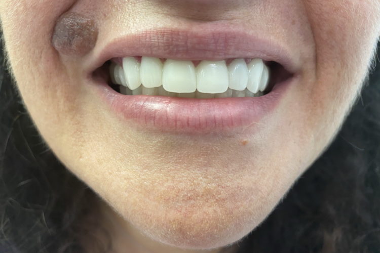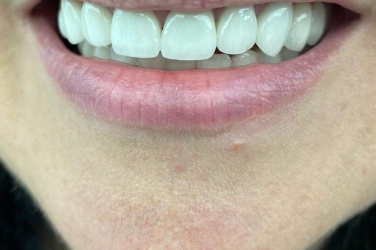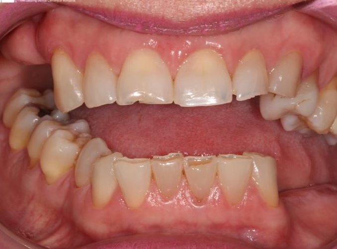 Pacienta in varsta de 52 de ani s-a prezentat in clinica noastra aflandu-se in cursul unui tratament implanto-protetic inceput in alta clinica. Pentru realizarea unor lucrari echilibrate ocluzal i s-a propus si realizat temporizare prin lucrari de PMMA (foto 3 si 4). Dupa 6 luni s-au realizat lucrari definitive din ceramica pe zirconiu (foto 5-10).